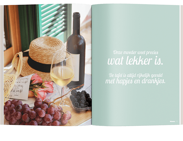 Stel in 2 minuten jouw stijl samen, schrijf de leukste verhalen en laat de kleinkinderen een mooie tekening maken. In een gepersonaliseerd tijdschrift voor Moederdag kan het allemaal. En hoe leuk is het om dit bijzondere cadeau samen met je broers en zussen te geven? Een lekker ontbijtje én een persoonlijk tijdschrift. Daarmee maak je er echt haar dag van.