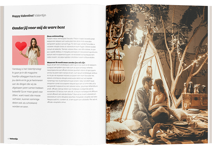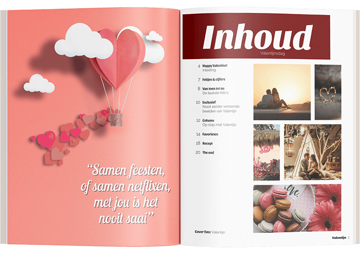 Op 14 februari is het Valentijnsdag. De dag van de liefde en de dag van rozen, kaarsen, lekker eten en een glaasje bubbels. Maar wij hebben nog een tip om Valentijnsdag extra bijzonder te maken: maak een magazine voor jouw Valentijn, waarop je terugblikt op de mooie momenten die jullie samen hebben beleefd.